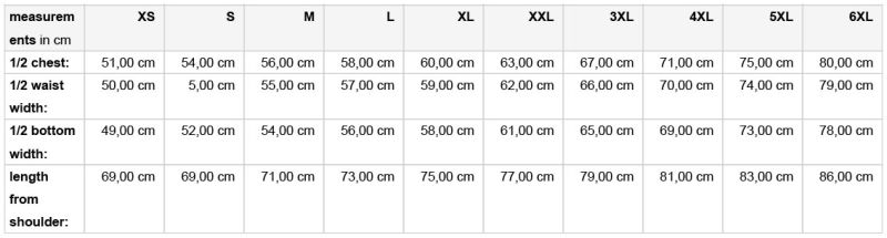 Velikosti: XS – 6XL Tabela velikosti
