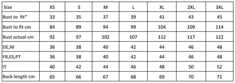 XS – 3XL